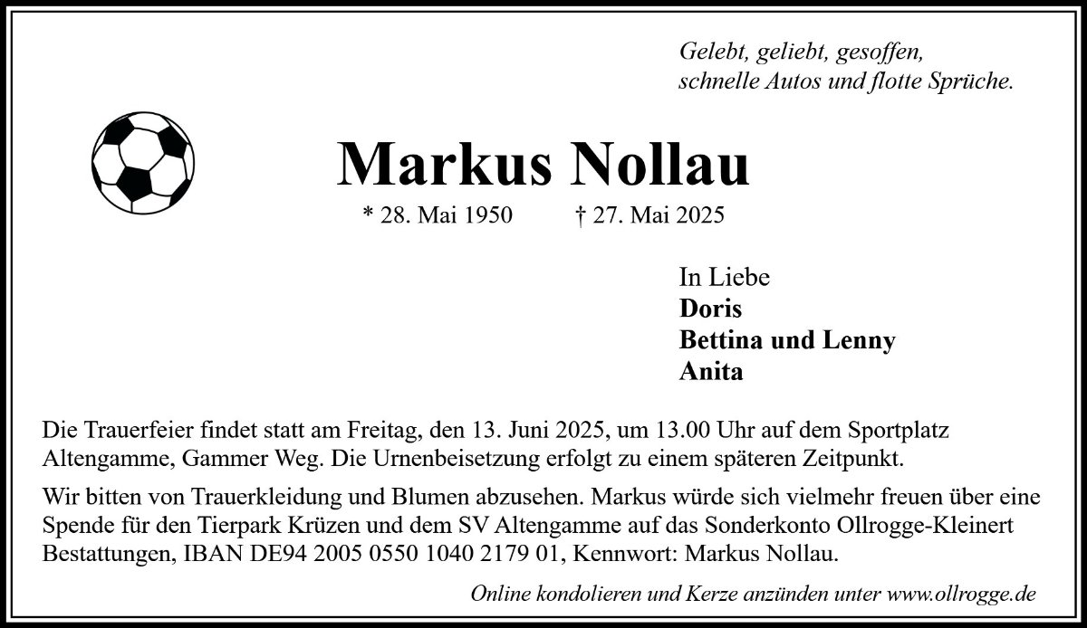 herzlichen Dank für die ungezwungene aber auch angemessen respektvolle Trauerfeier im Markus` zweitem Wohnzimmer am Gammer Weg. So hätte er das sicher gewünscht.