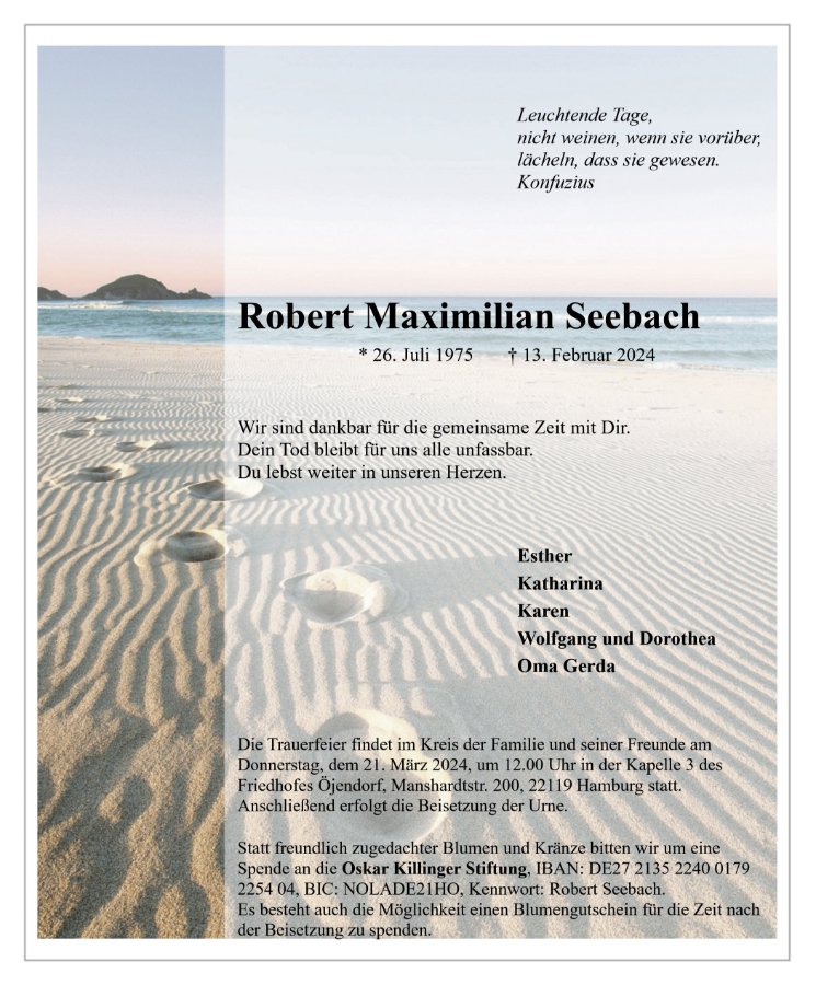 Sprechen Sie im Kondolenzbuch den Hinterbliebenen Ihr Beileid aus und teilen Sie persönliche Gedanken und Erinnerungen mit anderen.